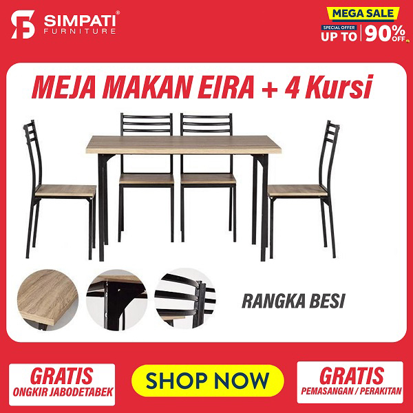 Meja Makan Eira + 4 Kursi Set 4 KURSI = Rp. 2.900.000 => Rp. 1.799.000
