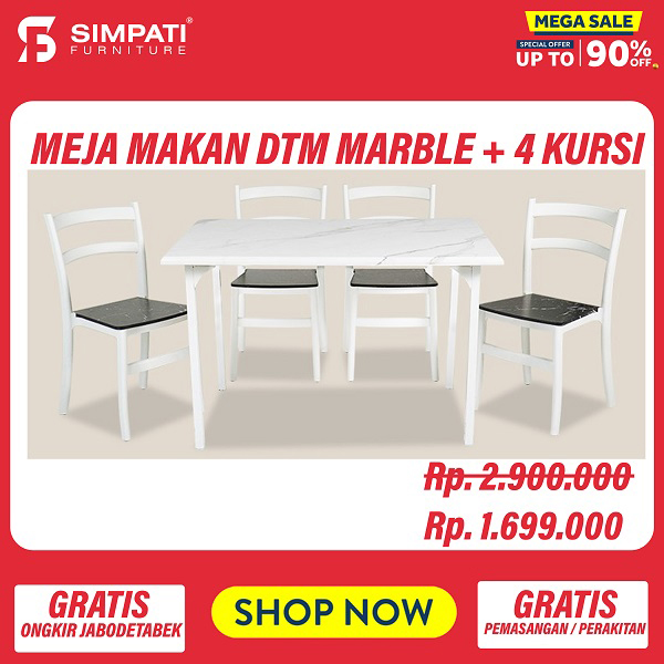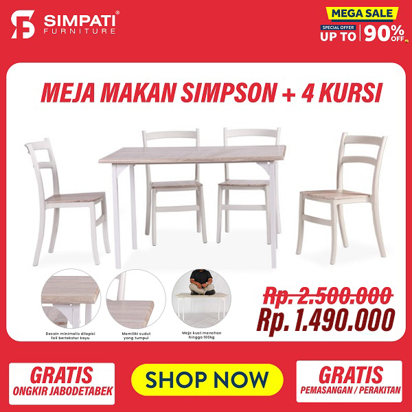 Meja Makan + 4 Kursi Metro Rp. 1.700.000 => Rp. 1.400.000 |