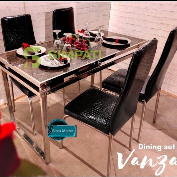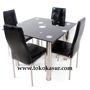 Meja Makan Kaca Kotak + 4 Kursi HITAM Rp. 3.500.000 => Rp. 2.150.000 |