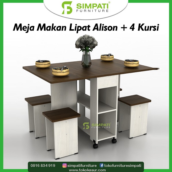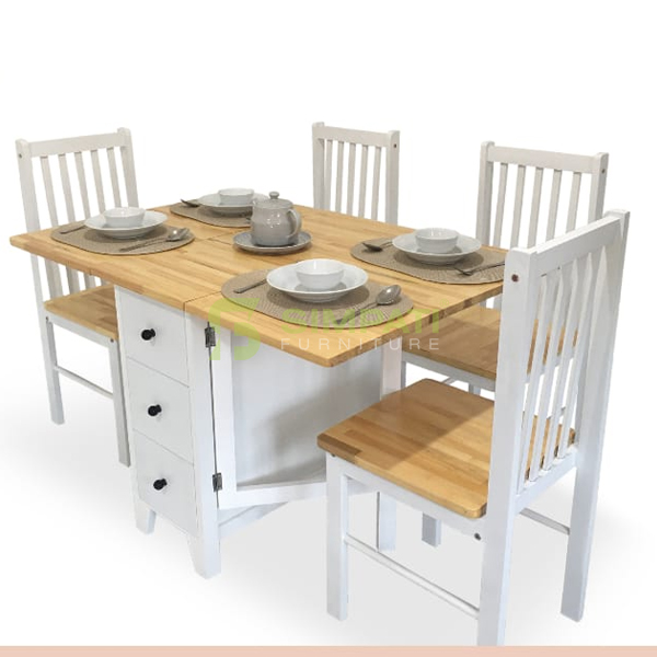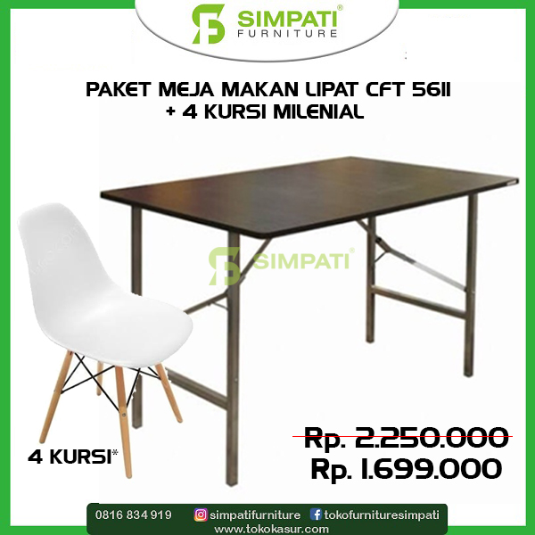 Meja Makan Lipat CFT 5611 + 4 Kursi Millenial ukuran meja = 120 x 80 x 75 cm Rp. 2.250.000 -> Rp. 1.699.000
