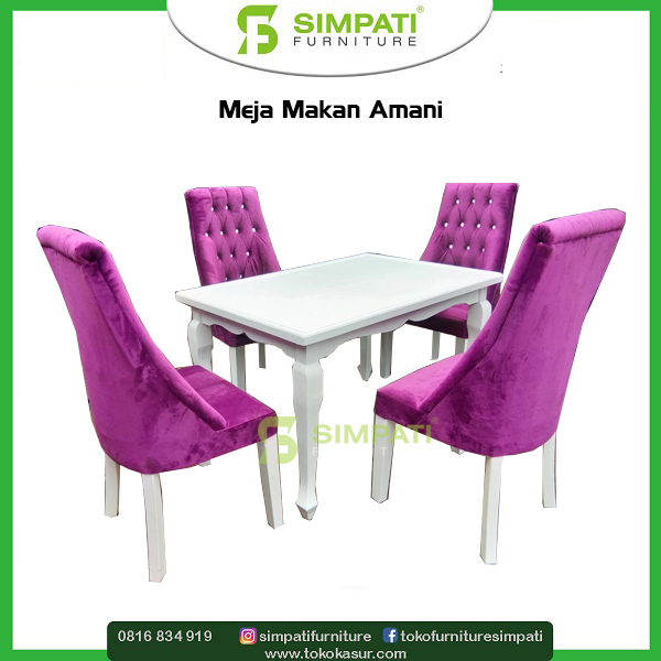 Meja Makan Putih Amani (jok bisa pilih warna) Set 4 KURSI = Rp. 4.400.000 => Rp. 3.500.000 Set 6 KURSI = Rp. 5.500.000 => Rp. 4.400.000 |
