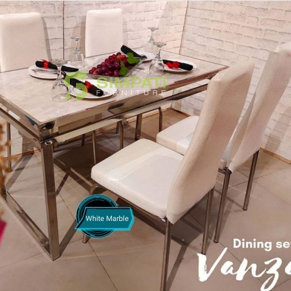 Meja Makan Marmer MAESTRO Kaki Stainless + 4 Kursi AC 114 Panjang Meja 160x90x75 Rp. 16.700.000 => Rp. 11.690.000