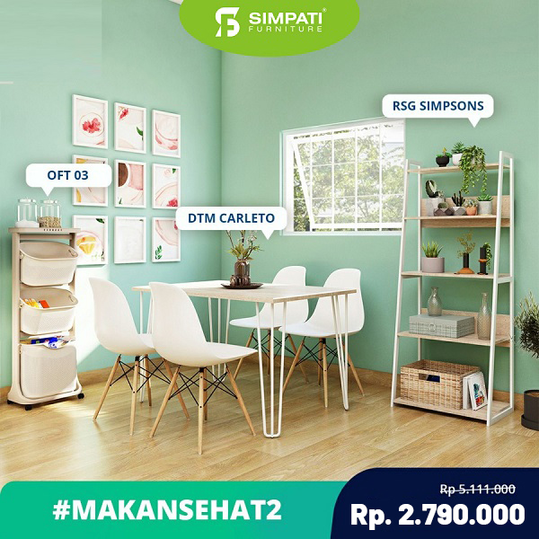MEJA MAKAN BULAT + 4 KURSI AYANA Harga Normal = Rp. 6.530.000 Harga Promo = Rp. 4.900.000 |