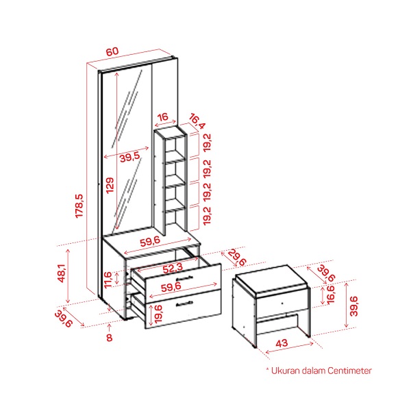 Meja Rias MR 2126 70x40x170 cm Rp. 1.208.000 -> Rp. 1.100.0000 |