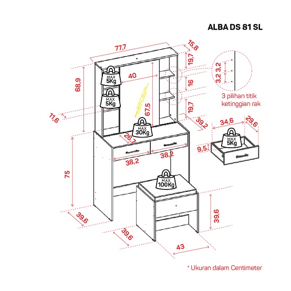 Meja Rias MR 525 80x40x152 Rp. 813.200 => Rp. 699.000 |